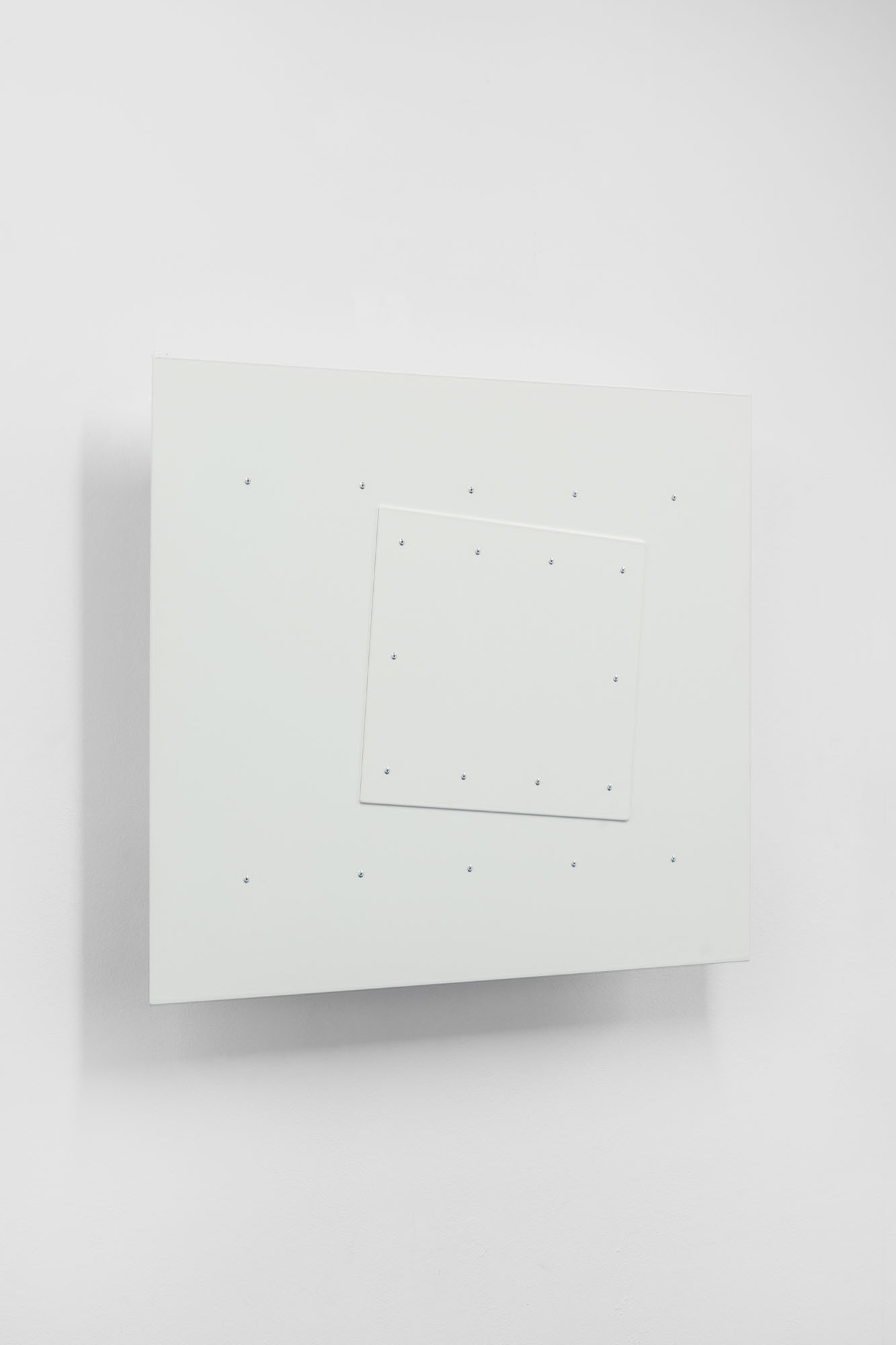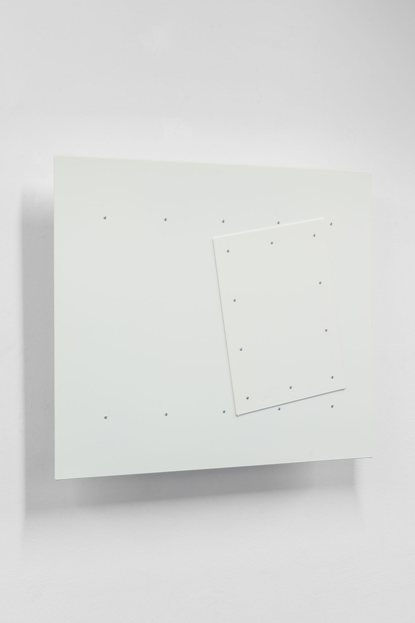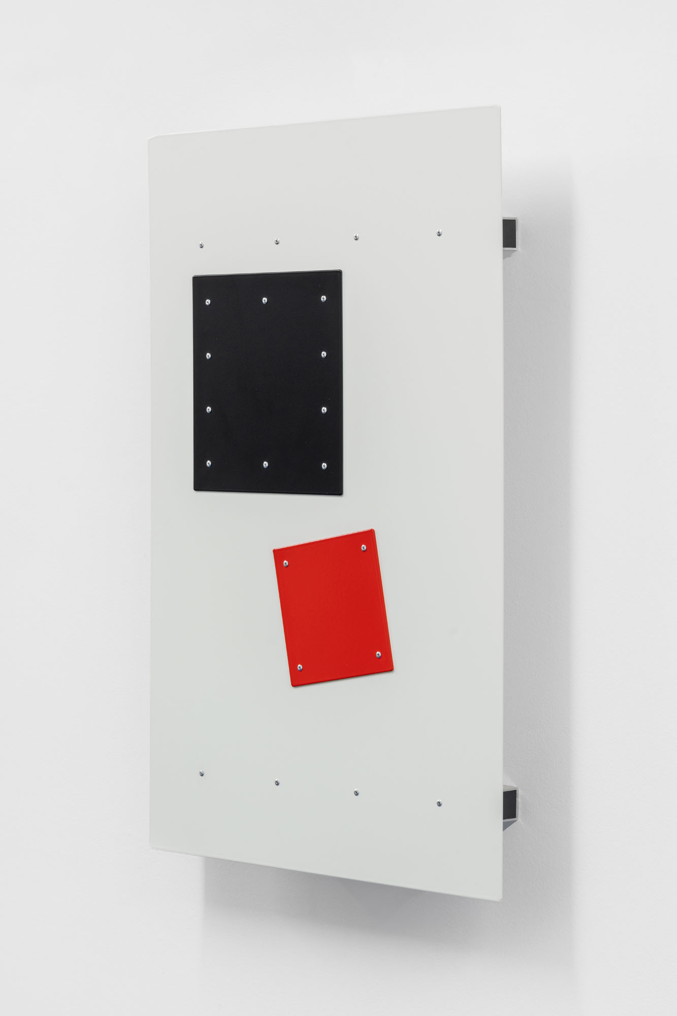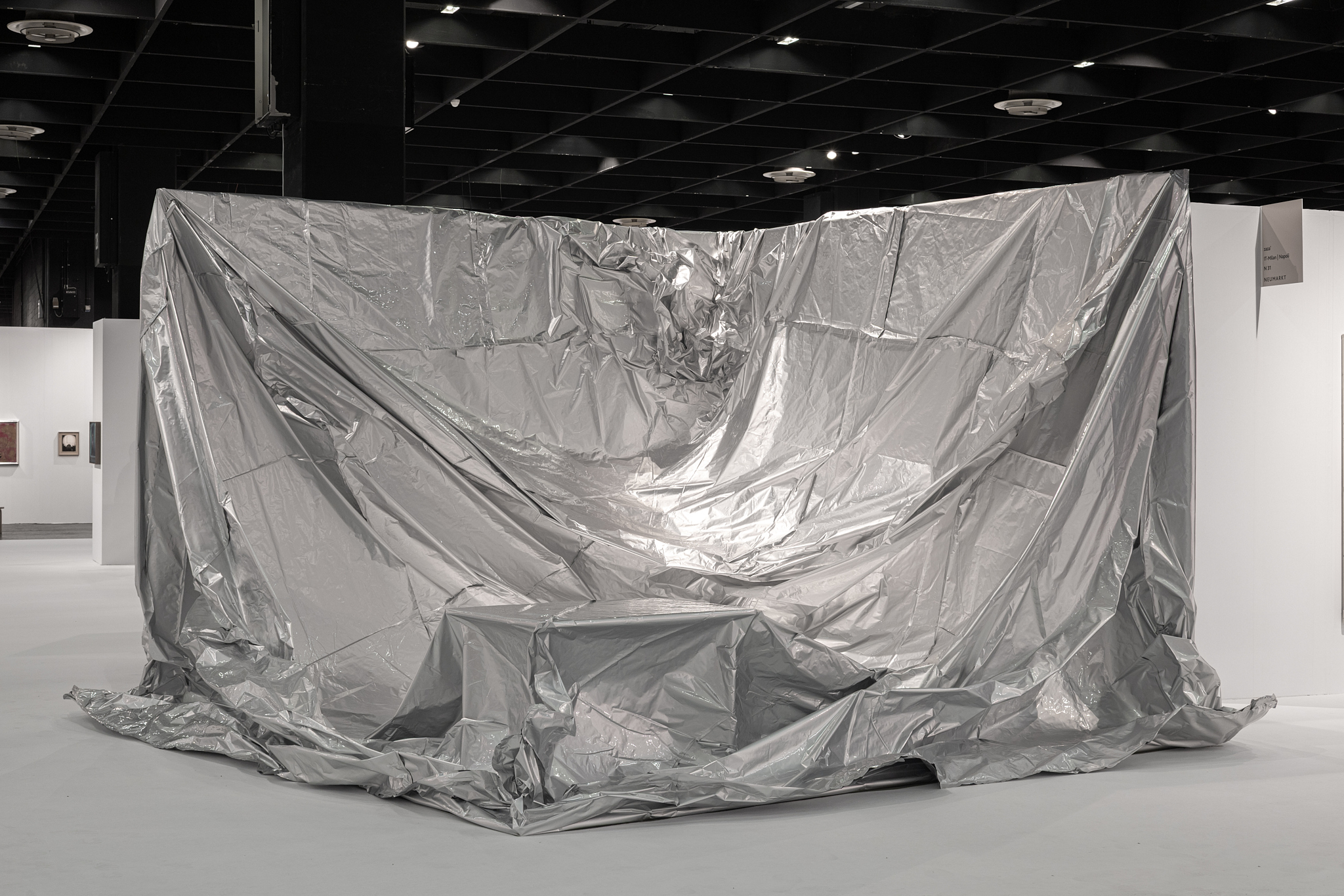 At Art Cologne 2025, zaza’ presents a collaborative project by Lydia Ourahmane and Sophia Al-Maria, alongside a new series of works by Emanuele Marcuccio. Al-Maria and Ourahmane’s ‘Grey Unpleasant Land’ is reimagined here as a spatial translation of their 2023 exhibition at Spike Island, Bristol. Extending their sculptural system to the scale of the fair booth, the artists treat its architecture — partitions, lighting, circulation — as both form and ideology. If the original project traced the psychic residue of Britishness, this iteration exposes the infrastructural residue of the art fair itself: an apparatus in which economies of value and gaze coincide. The system operates as a diagnostic tool, articulating a passage from the residues of empire to the protocols of display, where affect becomes infrastructure and critique becomes form. By inhabiting rather than illustrating the mechanisms of exchange, Al-Maria and Ourahmane turn the booth into a live critique of visibility, provenance, and cultural capital. Emanuele Marcuccio’s new series unfolds from a negotiation between authorship, production, and biography. Working with powder-coated metal panels and riveted geometries fabricated in the Veneto region — an area economically intertwined with the greater Rhine industrial corridor — Marcuccio transforms the anonymous language of fabrication into a medium of irony and self-reflection. His minimalist vocabulary, at once detached and vulnerable, reconsiders the gendered heroics of historical minimalism: the muscular “cowboy sanctity” of the 1960s reconfigured through a deliberate anti-virtuosity. Marcuccio’s works hover between homage and subversion. He frequently replays the gestures of other artists, fusing sincerity and parody, while allowing figuration to appear only as a hesitant undercurrent within abstraction. Through this restrained irony, his practice exposes the intersection of class, labour, and identity — turning the surface itself into a site of critique.