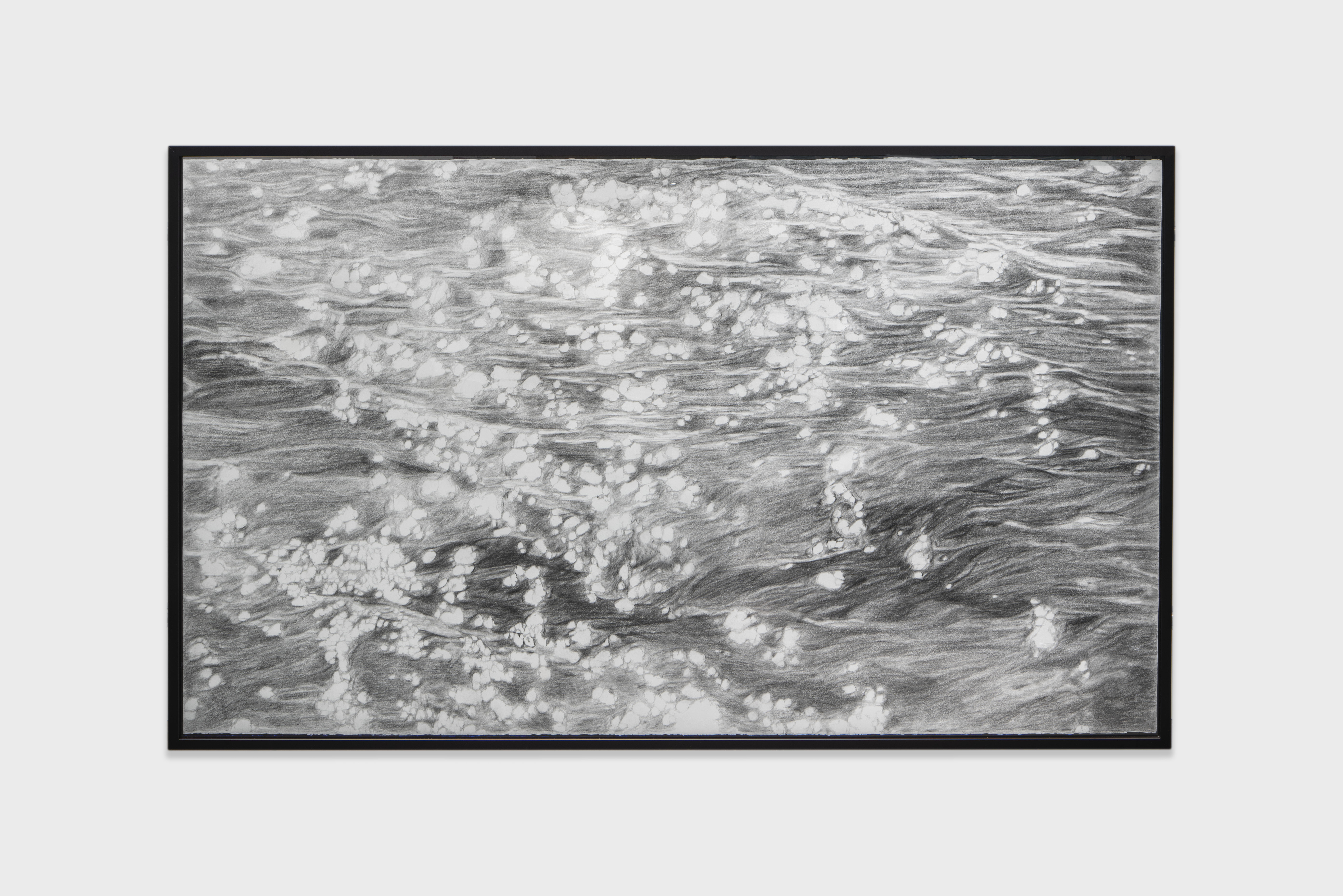 Rather than invoking a specific site of care, the installation unfolds within an abstract topology of containment — a space that echoes the architectures of recovery, isolation, and reflection. Against this boundedness, the drawings and sculptural elements evoke the fluid continuum of the sea: a figure of the elemental, of crossing and migration, of the body’s exposure to forces beyond control.