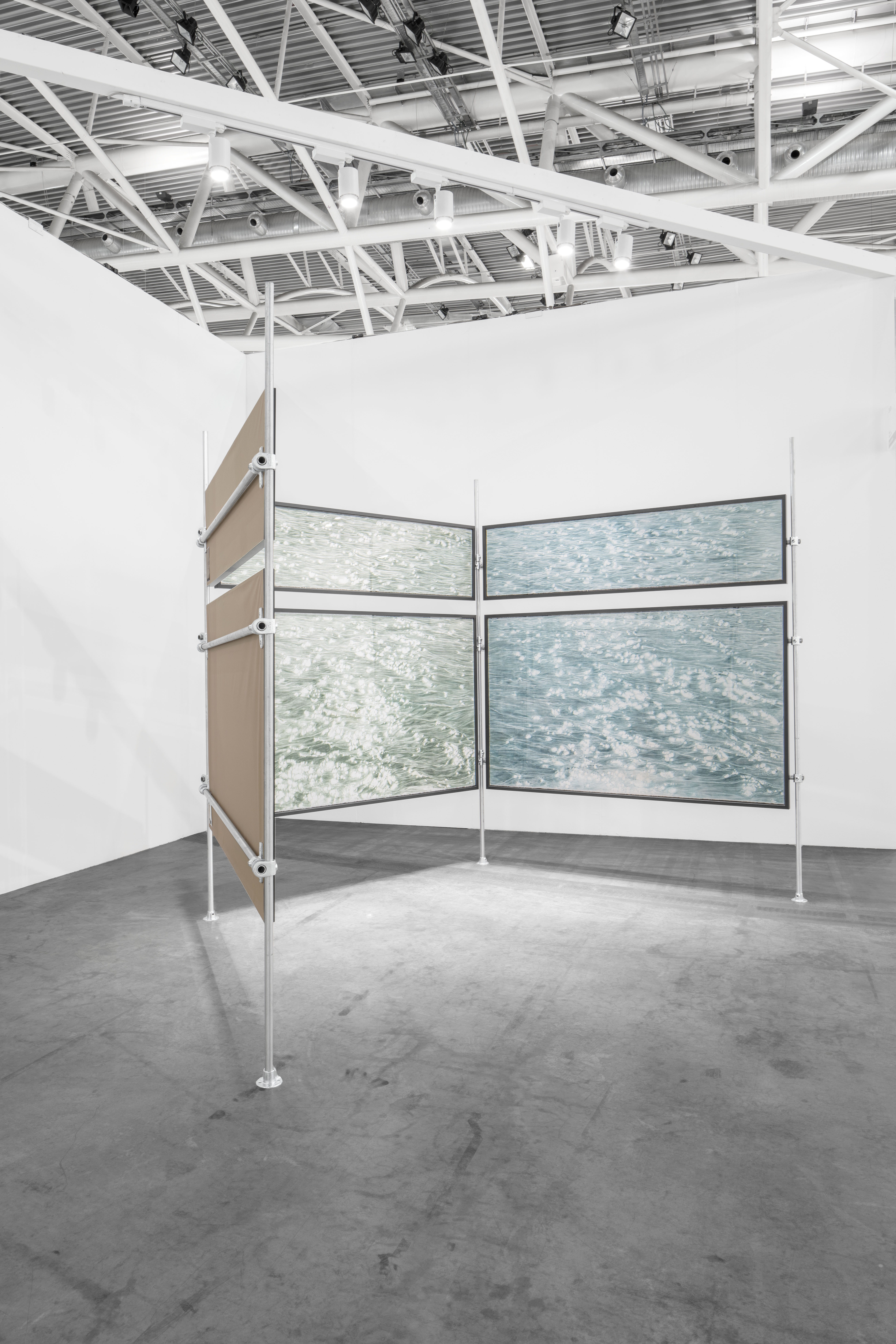 Piuttosto che evocare un luogo specifico di cura, l'installazione si dispiega all'interno di una topologia astratta di contenimento, uno spazio che riecheggia le architetture della guarigione, dell'isolamento e della riflessione. In contrapposizione a questa limitatezza, i disegni e gli elementi scultorei evocano il continuum fluido del mare: una figura dell'elementale, dell'attraversamento e della migrazione, dell'esposizione del corpo a forze al di là del controllo.