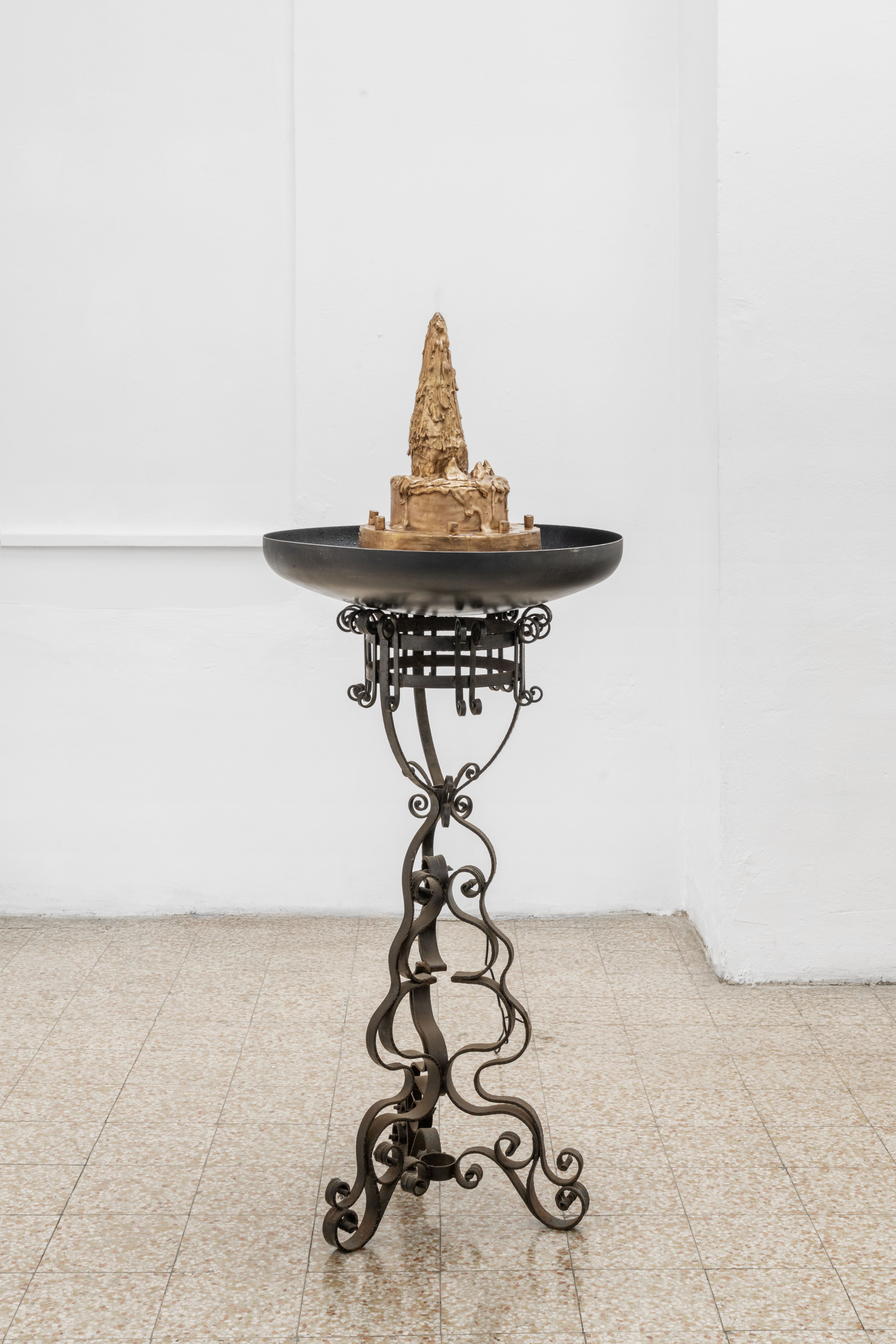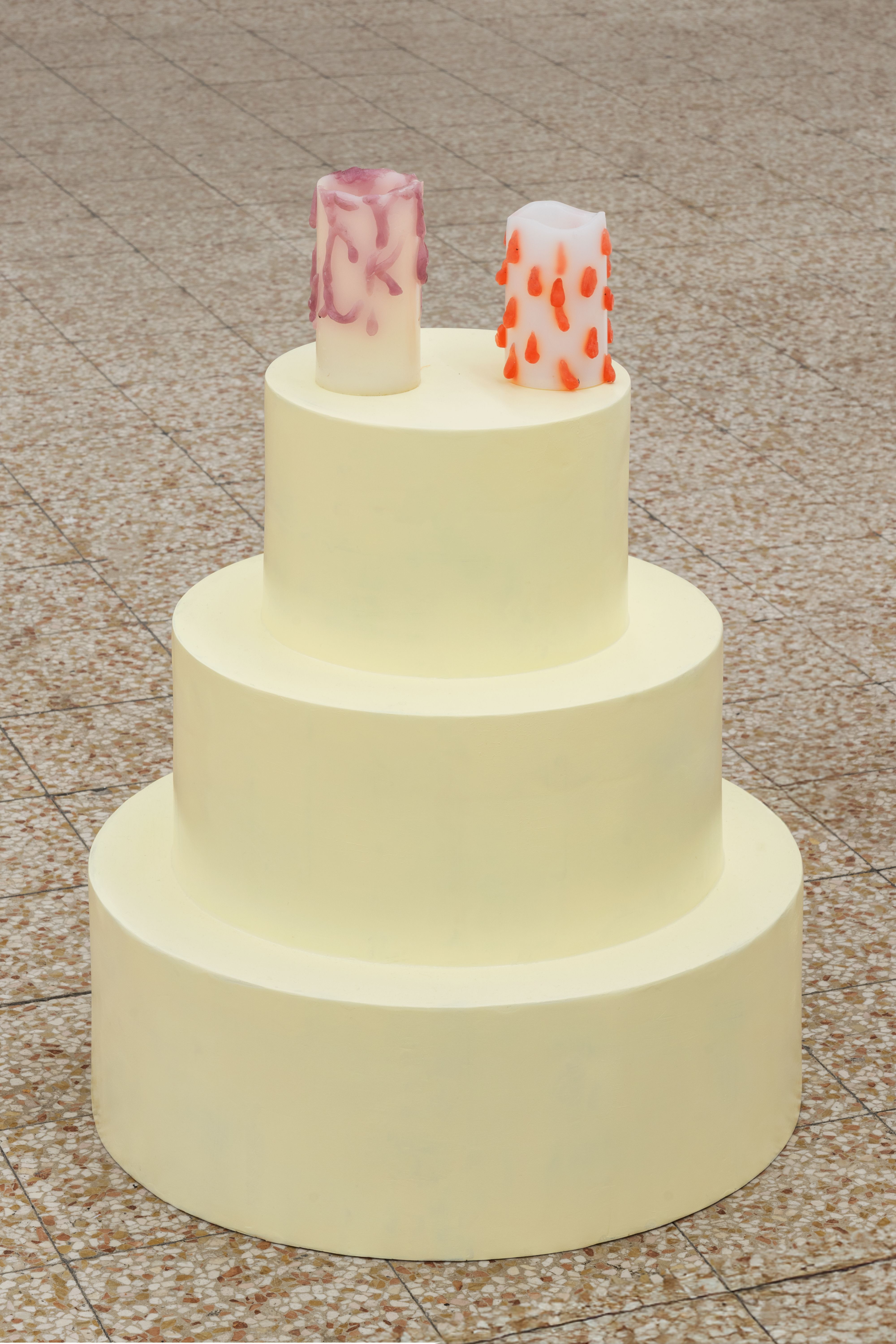 Gina Fischli’s work delves into themes of aspiration, desire, and the appeal of consumer objects. Drawing from her background in stage design, the Swiss artist merges traditional sculptural methods with unconventional production techniques, often incorpo- rating craft-based approaches and unexpected materials. She reimagines everyday subjects—such as household furniture, wine glasses, domestic animals, and birthday cakes—turning them into fantastical objects of desire. Infused with her signature playful irony, Fischli builds a world that is both mischievous and full of hidden intrigue.