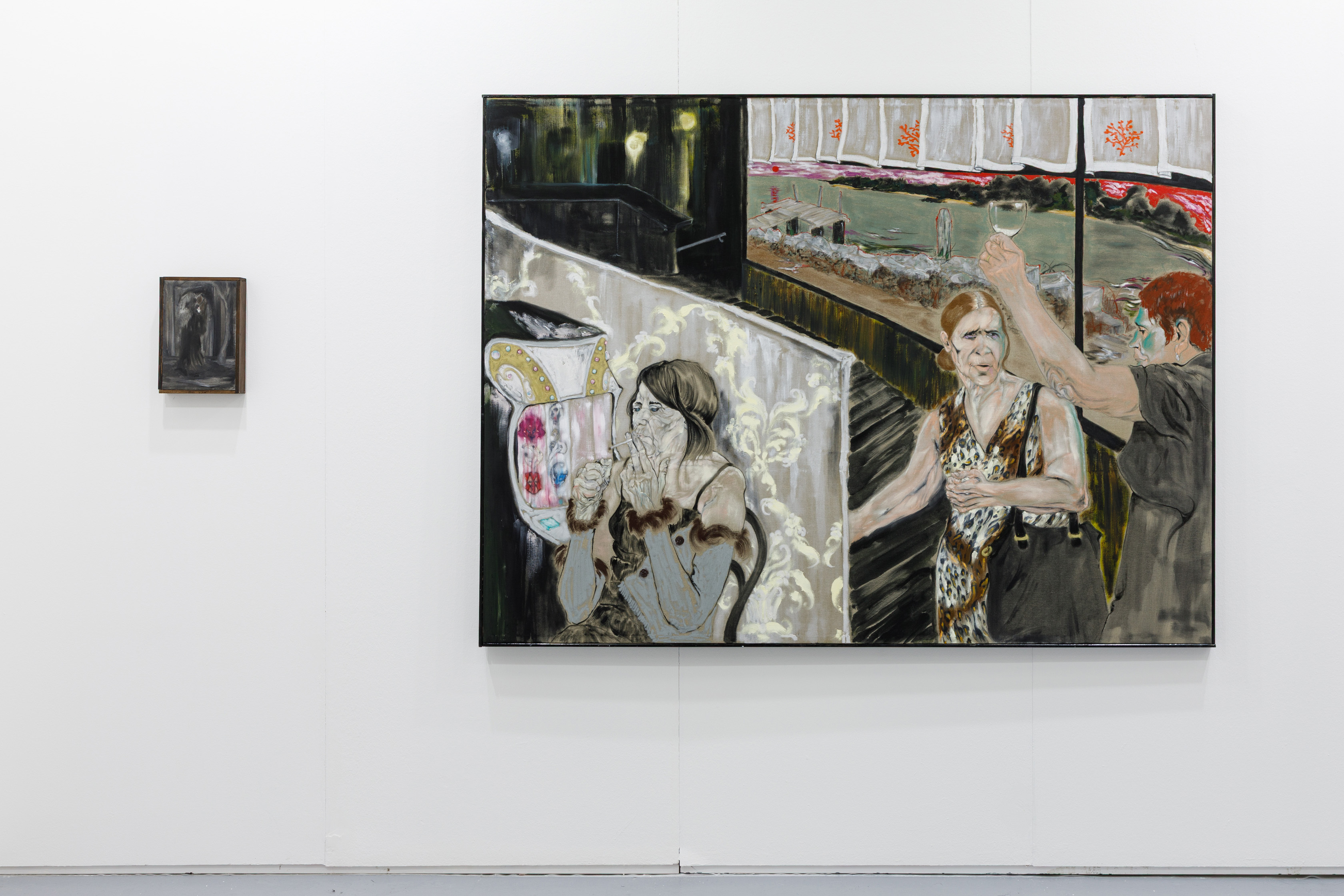 Radicato in una profonda attenzione per la pittura come pratica storica e materiale, il lavoro di Serpani risuona anche con una tradizione letteraria novecentesca che ha indagato il lato opaco della modernità—le sue micro-dinamiche, le sue ambiguità morali, la sua tragicità quotidiana. In questo senso, alcuni riferimenti pittorici emergono in modo obliquo: una sensibilità verso l’ordinario e verso l’assorbimento delle figure nello spazio che rimanda, senza mai tradursi in citazione, all’intimismo di Édouard Vuillard. Qui, come lì, ambiente e soggettività tendono a confondersi, e la scena sociale si costruisce attraverso colore, superficie e tensione espressiva.
